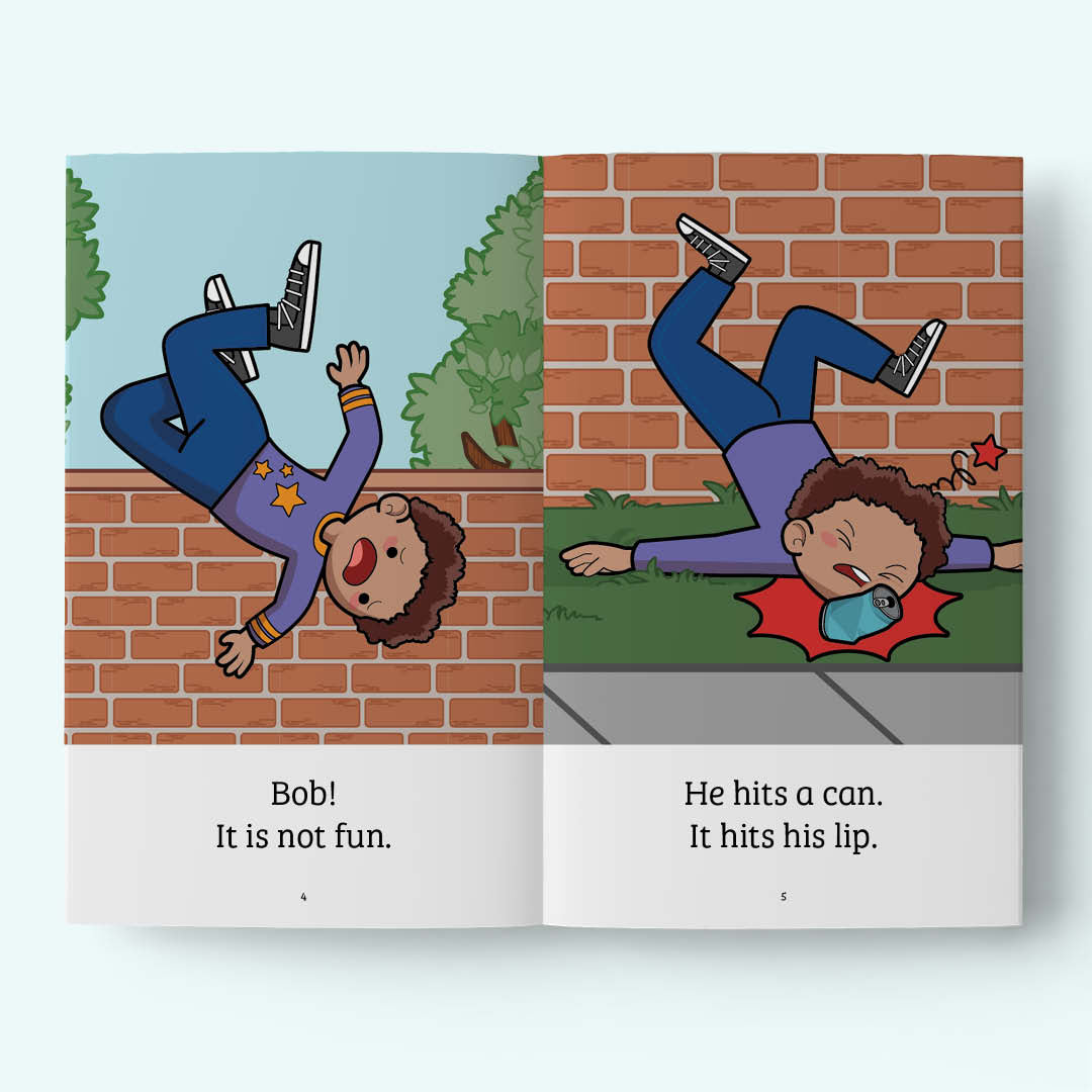 Stage 1 books focus on basic letter-sounds. These books are great options for first-time readers, or for those facing reading challenges. The c - Consolidatebooks incorporate previously taught sounds and introduce some useful words.